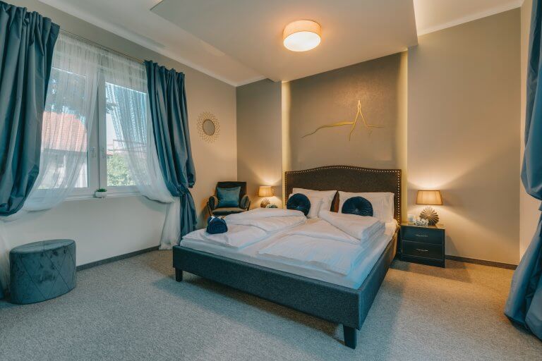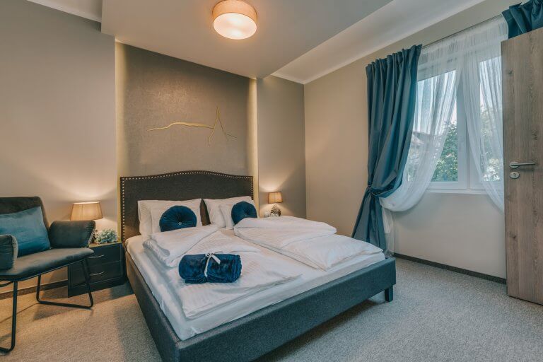 Családi dupla szobás lakrészünk képvisel mindent, amit a villa hivatott őrizni és éreztetni kedves vendégeinkkel. Lakosztályunk egyszerűbbé teszi az élményekben való osztozkodást utitársainkkal, elszigeteltsége a többi szobától csak növeli az exkluzivitás élményét. A lakrész egy fürdőből és két franciaágyas szobából áll, ezáltal 4 főnek biztosít kényelmes kikapcsolódást.